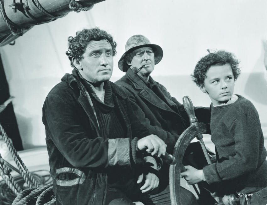 Este verano, como indiqué hace una semana, no hubo manera de descansar, pero, al mismo tiempo, sí tuve posibilidades añadidas de ver películas mientras estudiaba o preparaba materiales. Una de las que me conmovió de manera especial fue la versión de Capitanes intrépidos de 1937 – total nada los años que hace que se filmó… – protagonizada por Spencer Tracy.