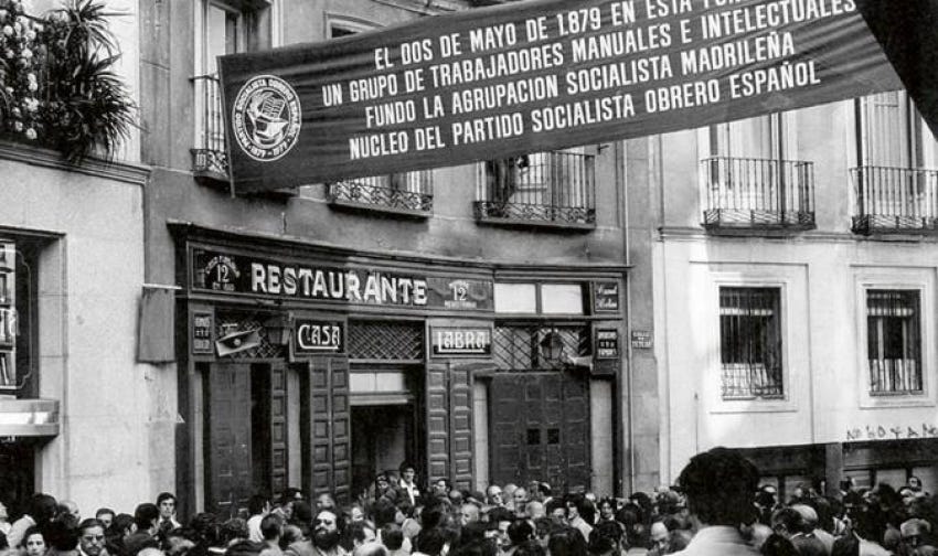 Si peculiar fue esa izquierda española primigenia vinculada con pasión religiosa al anarquismo no lo fue menos la manera peculiar que adoptó el socialismo encarnado en el PSOE. El Partido Socialista Obrero Español se fundó en 1879 en una taberna de Tetuán, Madrid. De sus miembros fundadores 16 eran tipógrafos; 4, médicos, 2, plateros, uno, doctor en ciencias, otro marmolista y otro más zapatero. En comparación con otros partidos hermanos de Europa era muy pequeño y de casi nula altura intelectual. Esas circunstancias explican que no comenzara a funcionar hasta 1881, gracias a la política de un gobierno liberal, y que hasta 1888 no experimentara una existencia apreciable. En ese año se fundó en Barcelona la UGT, pero lo cierto es que, finalmente, el centro neurálgico del socialismo español se estableció en Madrid desde donde irradiaría su influencia a Vizcaya, Asturias, Valladolid y Galicia.