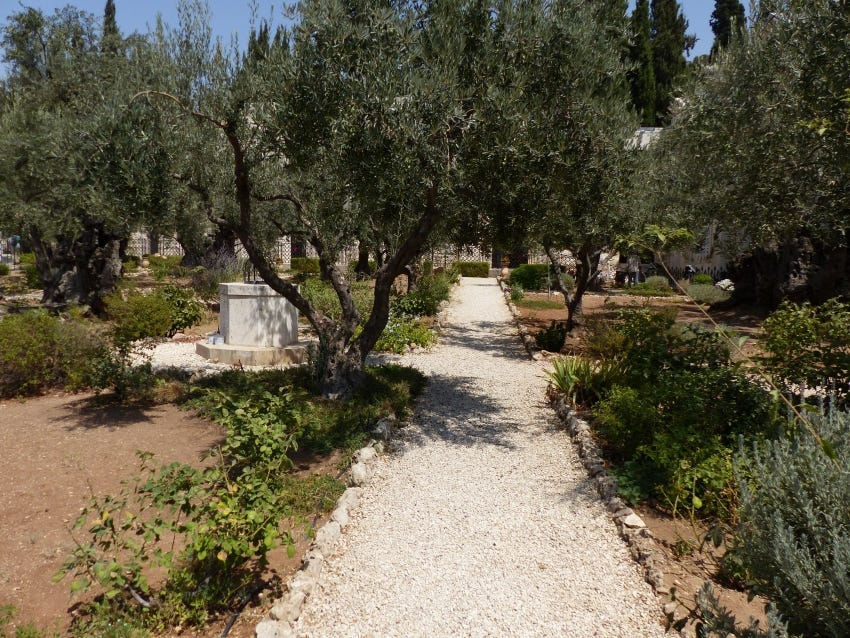 Tras advertir a los discípulos de lo que se acercaba, Jesús y sus discípulos llegaron a Getsemaní. El nombre deriva del arameo Gad-Smane que significa la prensa de aceite, es decir, un lugar donde se procedía a prensar las aceitunas procedentes de los olivos cercanos para conseguir el preciado alimento. En la actualidad hay cuatro lugares que compiten por el honor de ser el enclave en que Jesús oró aquella triste noche, a saber, la iglesia de todas las naciones que tendría un panorama del huerto y contaría con la roca de la agonía; la localización situada cerca de la tumba de María, la madre de Jesús, al norte; el enclave greco-ortodoxo situado al este y el huerto de la iglesia ruso-ortodoxa cercana a la iglesia de María Magdalena. A finales del siglo XIX, William Mc Clure Thomson señaló que el terreno estaba todavía abierto a todos la primera vez que llegó a Jerusalén y que cualquiera podía acudir a orar o meditar. Sin embargo, los católico-romanos se habían ido apoderando del lugar y acabaron cercándolo con un elevado muro. Entonces los greco-ortodoxos respondieron inventándose otra ubicación situada al norte. Según Mc Clure Thomson, ninguno de los dos lugares había sido el utilizado por Jesús ya que se encontraban muy cerca del bullicio de la ciudad y, seguramente, Gethsemaní se hallaba ubicado a varios centenares de metros al noreste de lo que ahora se enseña como el enclave del que hablan los evangelios. La verdad es que lo único que podemos afirmar con certeza es que se trataba de un huerto situado entre el arroyo Cedrón y la falda del monte de los olivos. Ir más allá entra ya en el terreno de la especulación.
