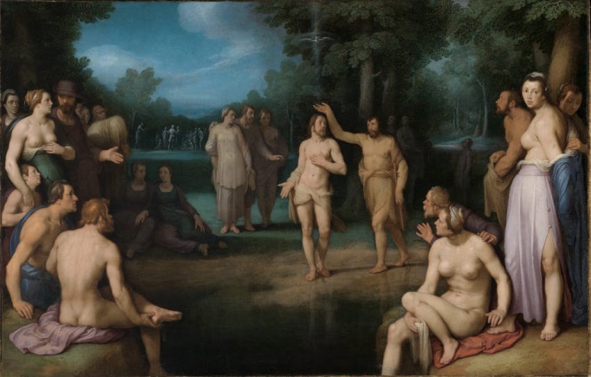 Ese llamamiento a la teshuvah y esa aceptación quedaban simbolizados por el bautismo que Juan realizaba a orillas del Jordán. La referencia al bautismo despertaría hoy en no pocas personas imágenes de niños que reciben un hilo de agua sobre la cabeza en medio de un rito que implica la entrada en la iglesia. El significado y el ritual en Juan era notablemente distinto a esa visión. De entrada, el bautismo se identificaba con una inmersión total en agua que es, dicho sea de paso, lo que la palabra significa literalmente en griego. En contra de lo que hemos visto en algunas películas en que un Juan de aspecto anglosajón deja caer unas gotas sobre un arrepentido barbudo, los que habían escuchado las palabras del Bautista eran sumergidos totalmente en el agua – lo que explica que el predicador hubiera elegido como escenario de su proclama el río Jordán – simbolizando de esa manera que Dios les había otorgado el perdón de sus pecados y que se había producido un cambio en su vida.
