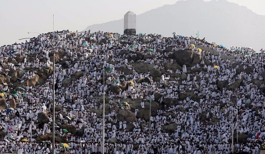 El viernes 9 de du-l-hishsha (8 de marzo de 632), en Arafa o, según otras tradiciones, en la colina de al-Rahma, Mahoma pronunció el denominado sermón de adiós o de ¿os he transmitido?. Dado el número de seguidores que lo escuchaba y guiado por el deseo de que hasta el último de ellos llegara el contenido de la predicación, sus palabras fueron repetidas con voz más potente por Bilal.