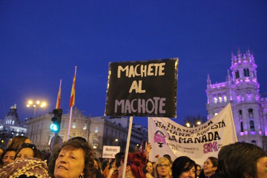 Me los lee y me los enseña: “1.1; Una mujer intenta quemar a su pareja en Reus. En 2016 ya había intentado matar a su hija; 7. 1, una mujer acuchilla a su pareja en Valladolid y lo deja encerrado; 8. 2, en Madrid, un anciano de 87 años es envenenado con detergente por su esposa; 8, 2, en Mollerusa, intenta matar a su marido golpeándole con una botella en la cabeza; 27.2, apuñala a su marido por la espalda en Castellón; 28.2, mata a puñaladas a su marido en El Condao, Laviana; 20, 3, una mujer acuchilla de gravedad a su marido en Baracaldo; 21. 3, en Valencia, una mujer asesina con arma blanca a su marido; 9. 4, una mujer apuñala a su marido en Ciudad Real; 16, 5, rocía con ácido a su marido en Murcia; 20.5, en Valencia, una mujer apuñala en la cara a un hombre que queda en coma; 4. 6, una mujer mata a su pareja en Manresa y envía las fotos por wassapp; 27.7, una mujer de 38 años golpea a su pareja de 80 con una barra de hierro; 4. 8, una mujer mata a puñaladas a un joven en Arona; 29.8, una mujer apuñala a un taxista en plena carrera; 2, 9, una mujer mata con arma blanca a un hombre en El Casar; 3.9, una mujer de 50 años acuchilla más de cuarenta veces a su pareja en Pozo Izquierdo; una joven mata a su pareja a puñaladas en Lugones; arroja a la cara de su esposo un líquido corrosivo en Archena; una mujer mata a su hermano en Águilas; una mujer en Santomera intentó matar a su pareja y a sus hijos resultando herido un policía local que acudió a detenerla; en Denia detienen a una mujer por encargar el asesinato de su exmarido; en Gran Canaria, acuchilla a su novio alegando que si no era para ella no era para nadie; asesina a cuchilladas a su marido en Patraix…” se detiene con una voz que es un sollozo. “Mira”, me dice, “mira. Estos son sólo algunos de los casos en 2018. A los políticos y a los medios no les importa. Ni siquiera estamos en las estadísticas. Pero las mujeres nos están matando”.