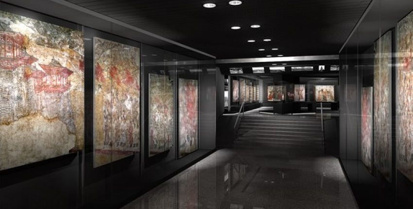 Hay momentos en esa visita cuando, como si estuviéramos embriagados, Lara y yo nos sentamos a descansar y a intentar evitar que tanta belleza nos abrume. Así resulta especialmente tras contemplar los frescos de la dinastía Tang que también llamaron la atención del presidente Bill Clinton en una visita a China. Cuando occidente no se había repuesto todavía del desplome del imperio romano y su arte era apenas balbuciente, cuando el islam asentado en el sur del continente no había conseguido despegar culturalmente porque no había absorbido, siquiera en parte, la herencia clásica, cuando buena parte de Europa yacía realmente en tinieblas, los chinos de la dinastía Tang dejaban reflejados en sus frescos un mundo de damas de la corte y poetas, de mujeres dedicadas a la música y cacerías imperiales, de refinamiento y belleza. Tan sólo por la extraordinaria sala dedicada a los frescos prodigiosos de esta dinastía merecería la pena visitar este museo.