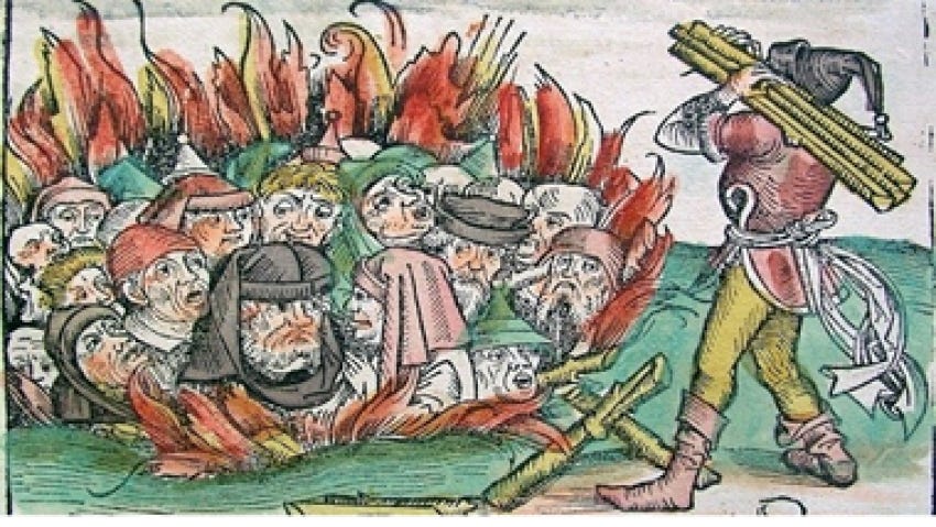 Los años finales del s. XIV constituyeron una etapa de especial dificultad para los judíos españoles. Ciertamente, la revuelta historia de las coronas de Castilla, Aragón y Navarra – que tanto pesó en el parón experimentado por la Reconquista – no constituía un contexto propicio para la paz y el sosiego. Pero a ese importante factor se unieron otros. Por un lado, se encontraba el endurecimiento creciente de las disposiciones papales dirigidas contra los judíos. Si durante el siglo XIII, las mismas habían sido desoídas por monarcas de la talla de Fernando III el santo o de Alfonso X el sabio, no sucedió lo mismo durante el siguiente hasta el punto de que, por primera vez en la Historia española, se aceptó que llevaran divisas distintivas, una medida bochornosa que llegó hasta las infames leyes de Nüremberg de 1935 en el III Reich. A ello se sumó la proliferación de leyendas antisemitas que los culpaban de la propagación de la peste y del envenenamiento de fuentes y pozos, y, sobre todo, la manipulación del pueblo llano perpetrada por el clero católico convenciéndole de que los judíos eran los culpables de sus desdichas.